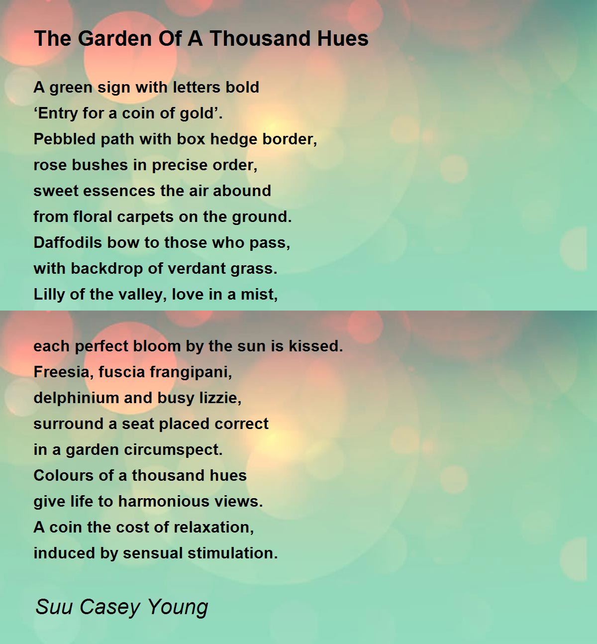 each perfect bloom by the sun is kissed.