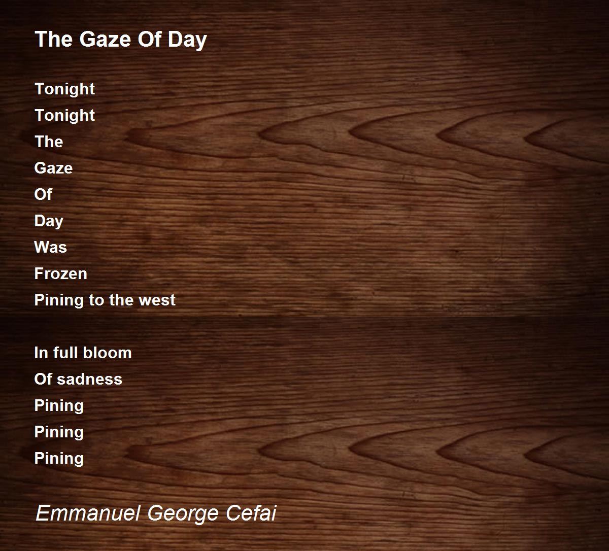 Tonight Tonight The Gaze Of Day Was Frozen Pining to the west In full bloom Of sadness Pining Pining Pining