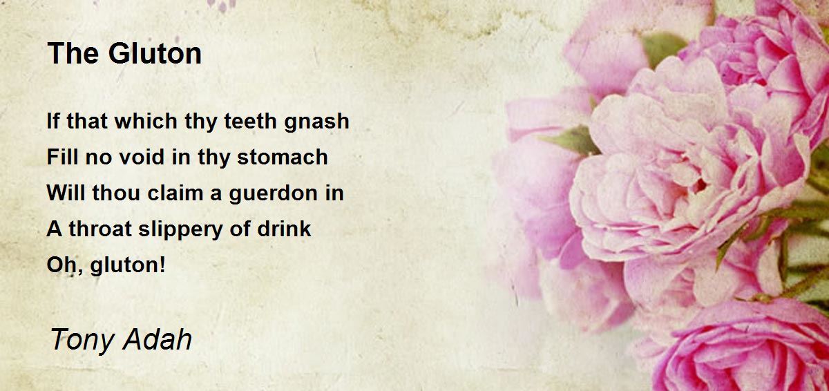 If that which thy teeth gnash Fill no void in thy stomach Will thou claim a guerdon in A throat slippery of drink Oh, gluton!