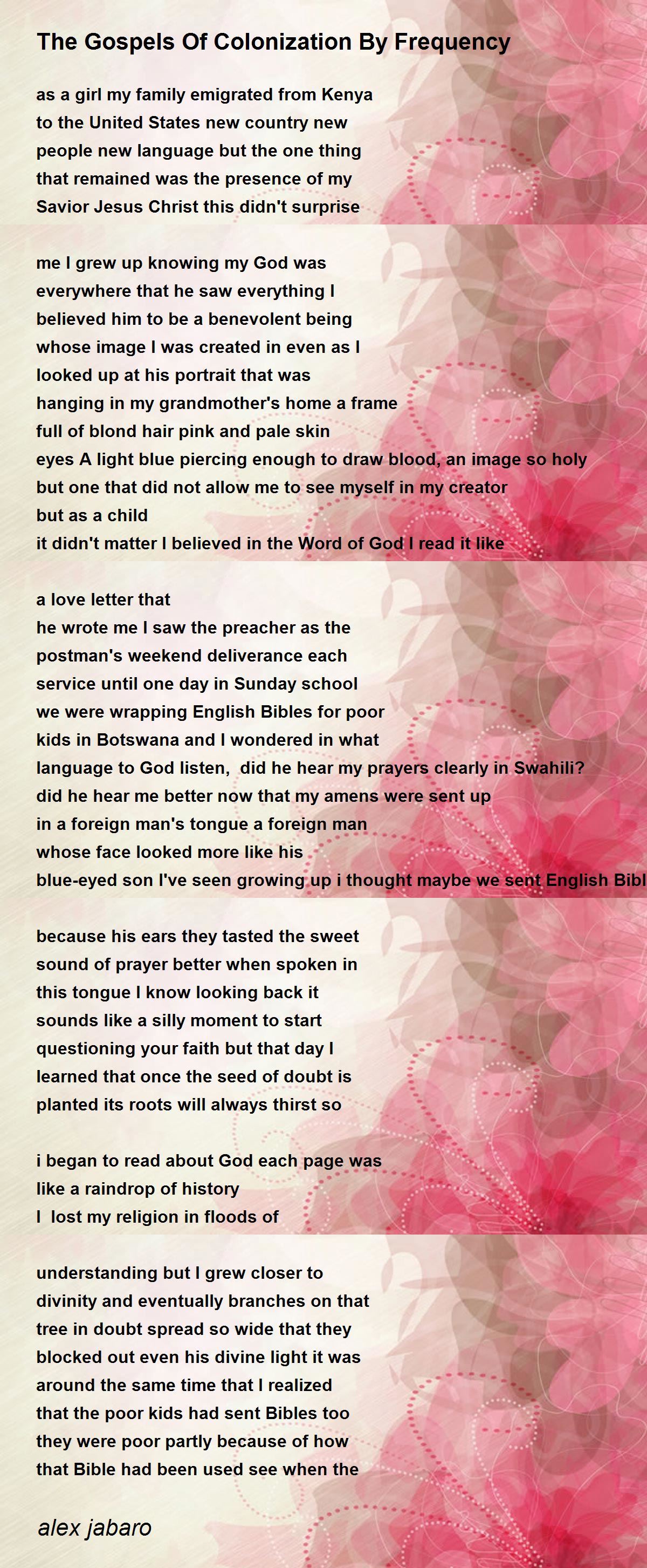 The Gospels Of Colonization By Frequency Poem by alex jabaro