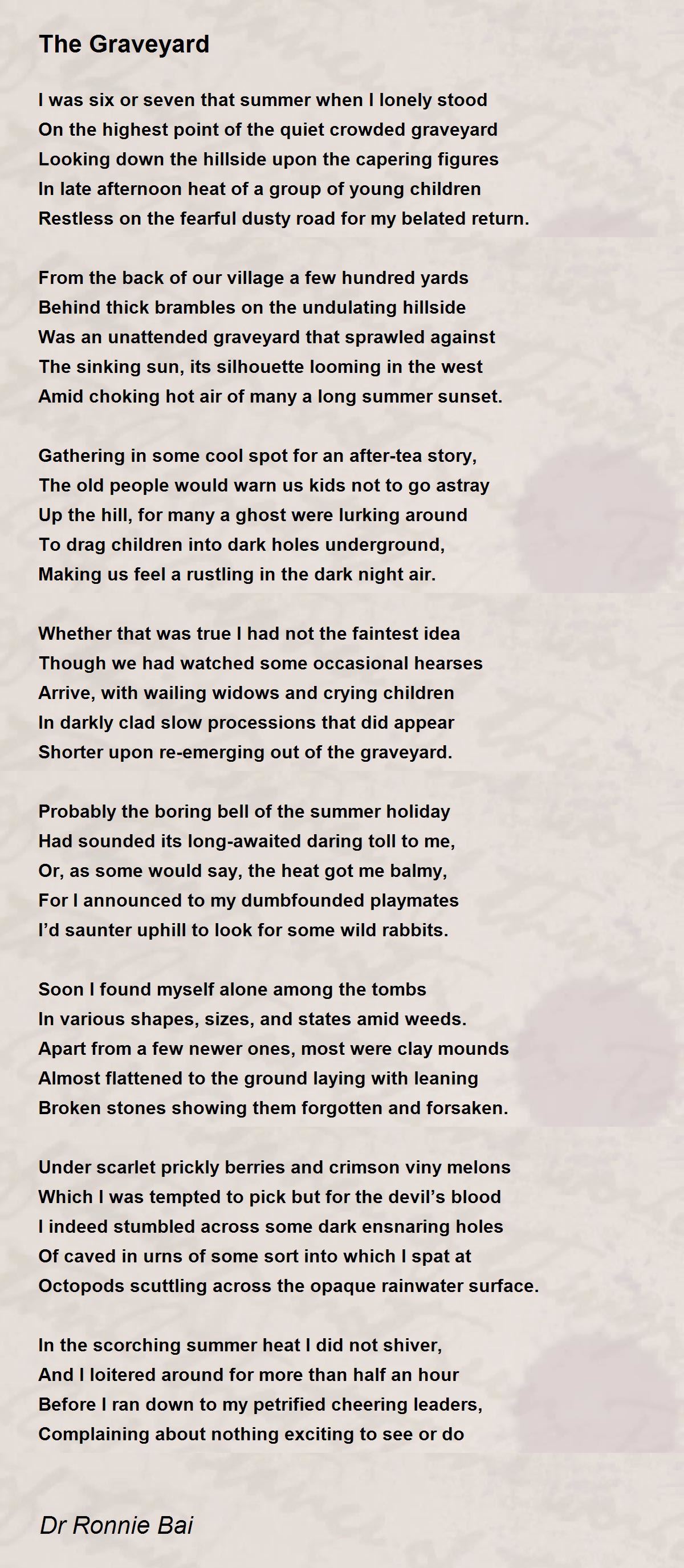The graveyard I no longer hold as a veritable playground
