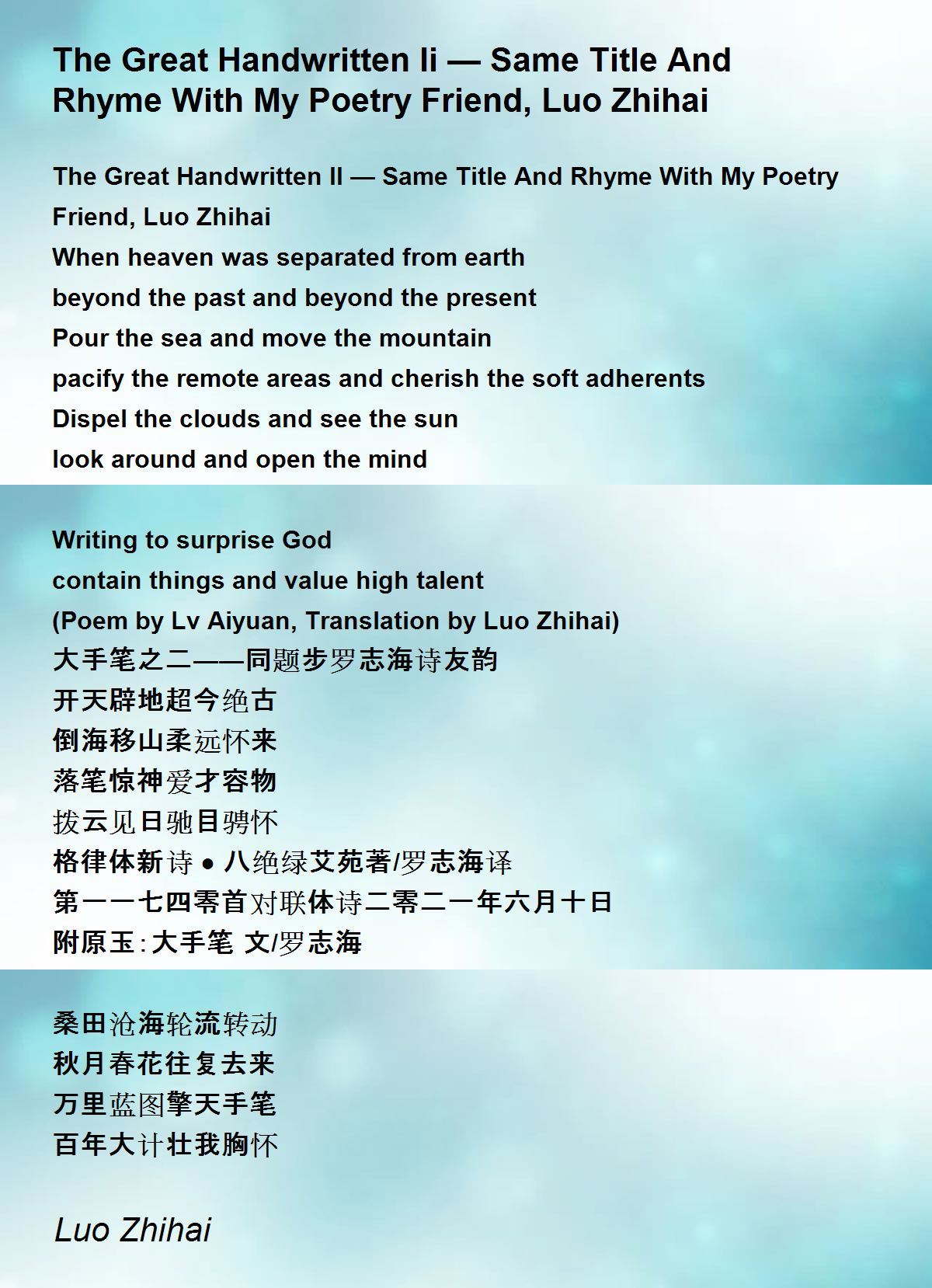 The Great Handwritten II — Same Title And Rhyme With My Poetry Friend, Luo Zhihai