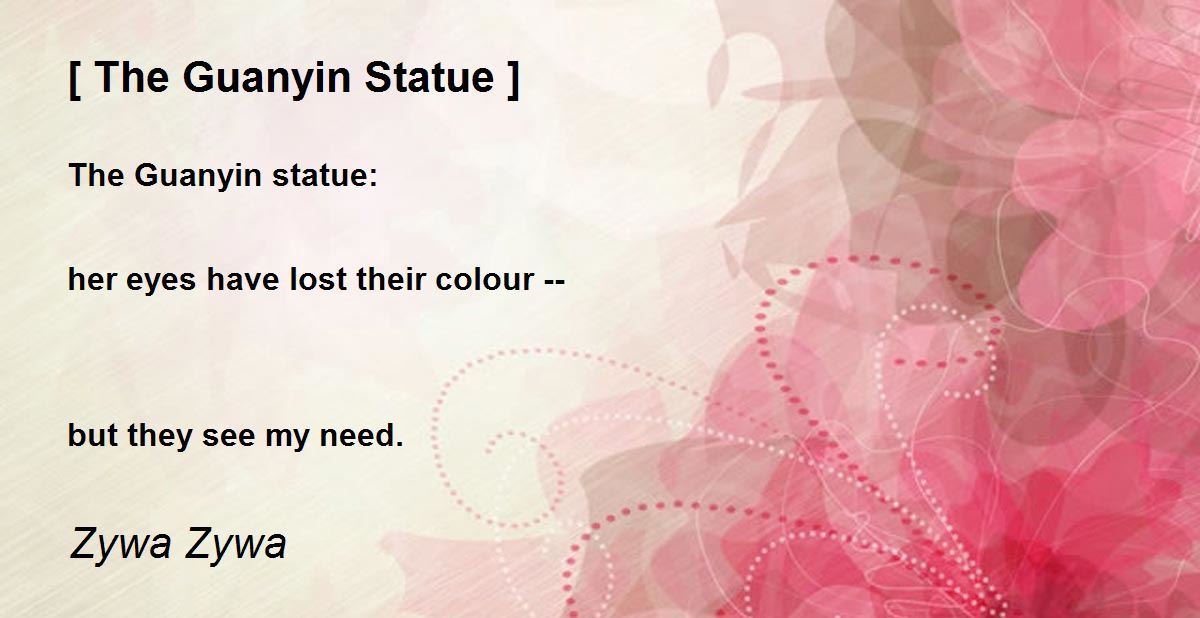 The Guanyin statue: her eyes have lost their colour -- but they see my need.