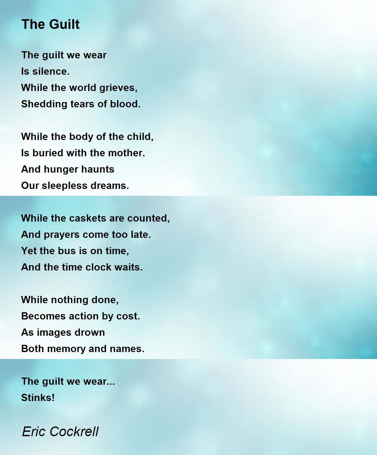 A philosophical theme with a profound meaning. If we wait doing nothing, still the bus will arrive on time for us to leave. At the end, images will drown with memories and names so hat guilt we are compelled to wear will certainly stink. Great thinking fabulous writing. Thanks for sharing. X