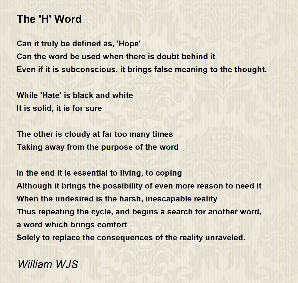 Thus repeating the cycle, and begins a search for another word, a word which brings comfort