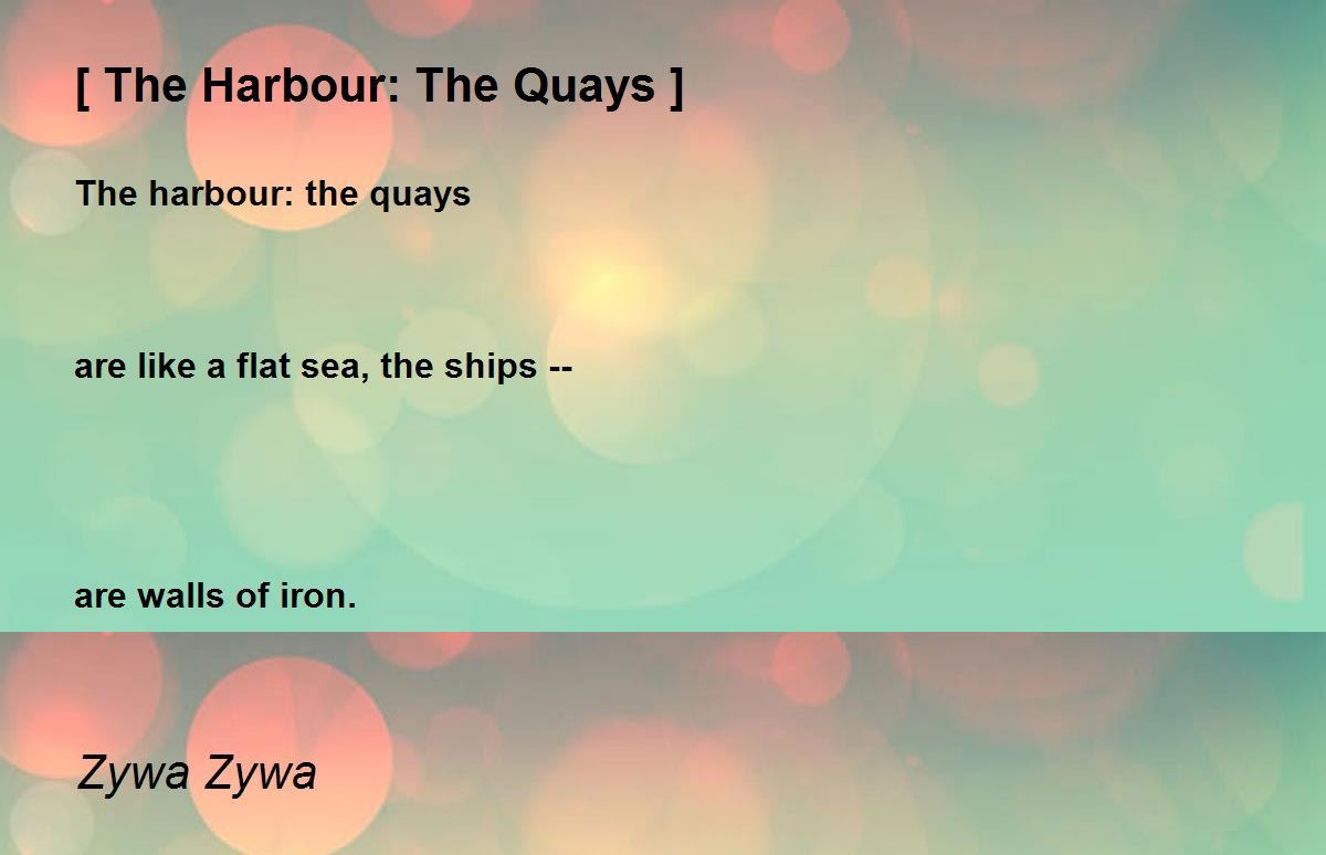 The harbour: the quays are like a flat sea, the ships -- are walls of iron.