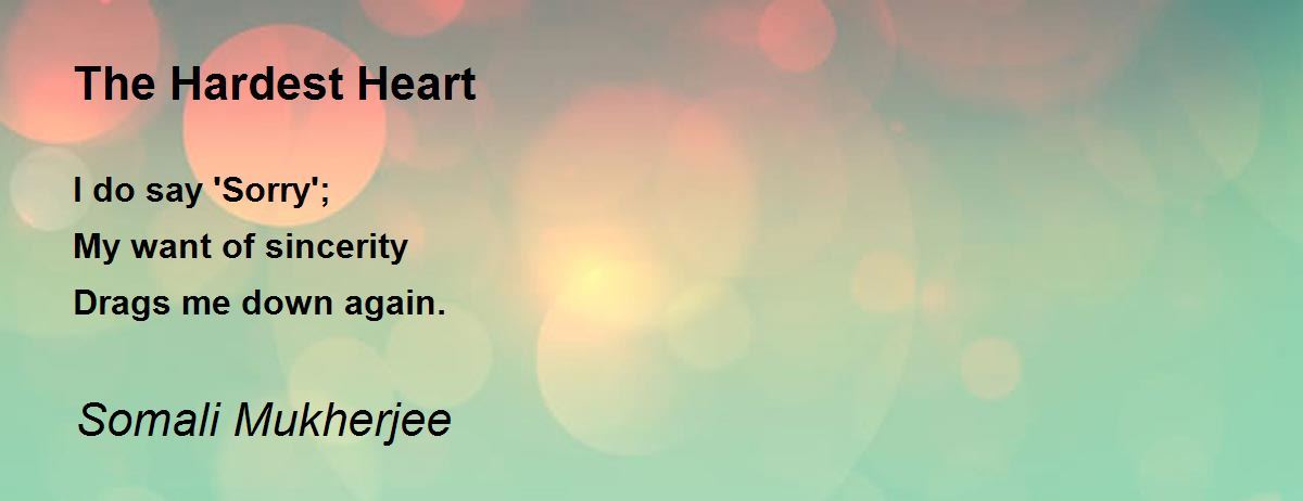 Topic(s) of this poem: heart,sorry,hardship,hardships,broken heart,heartbreak,heartache,heart song,haiku,senryu,apology,cruelty,indifference,confessional,truth,honest,honesty,didactic