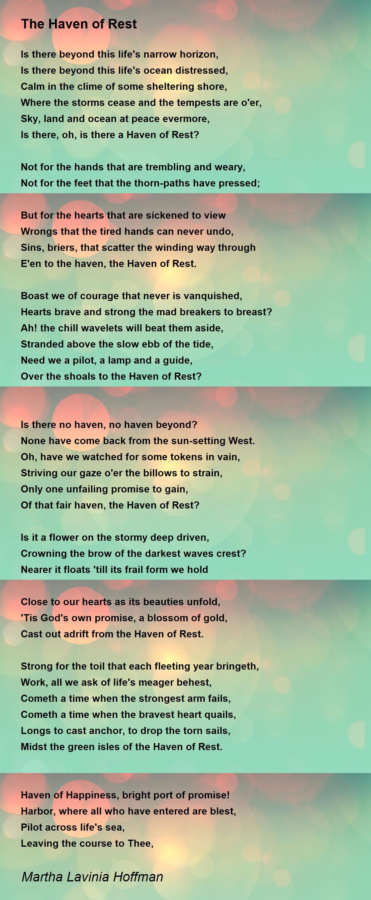 Of that fair haven, the Haven of Rest?