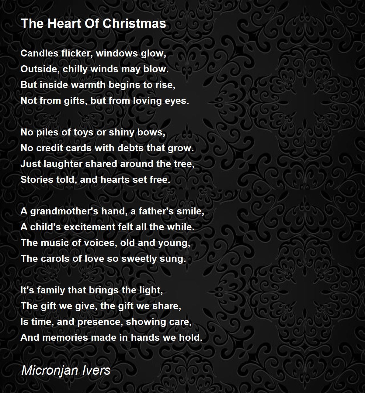 Not from gifts, but from loving eyes.