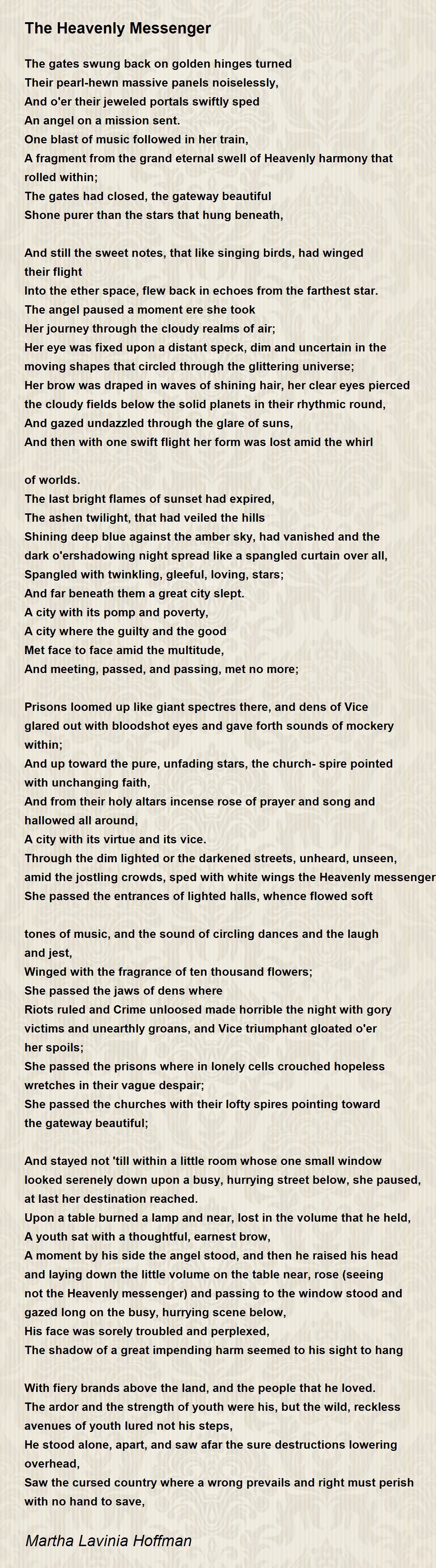For when the angel messenger was gone, her message lived engraven on his heart,