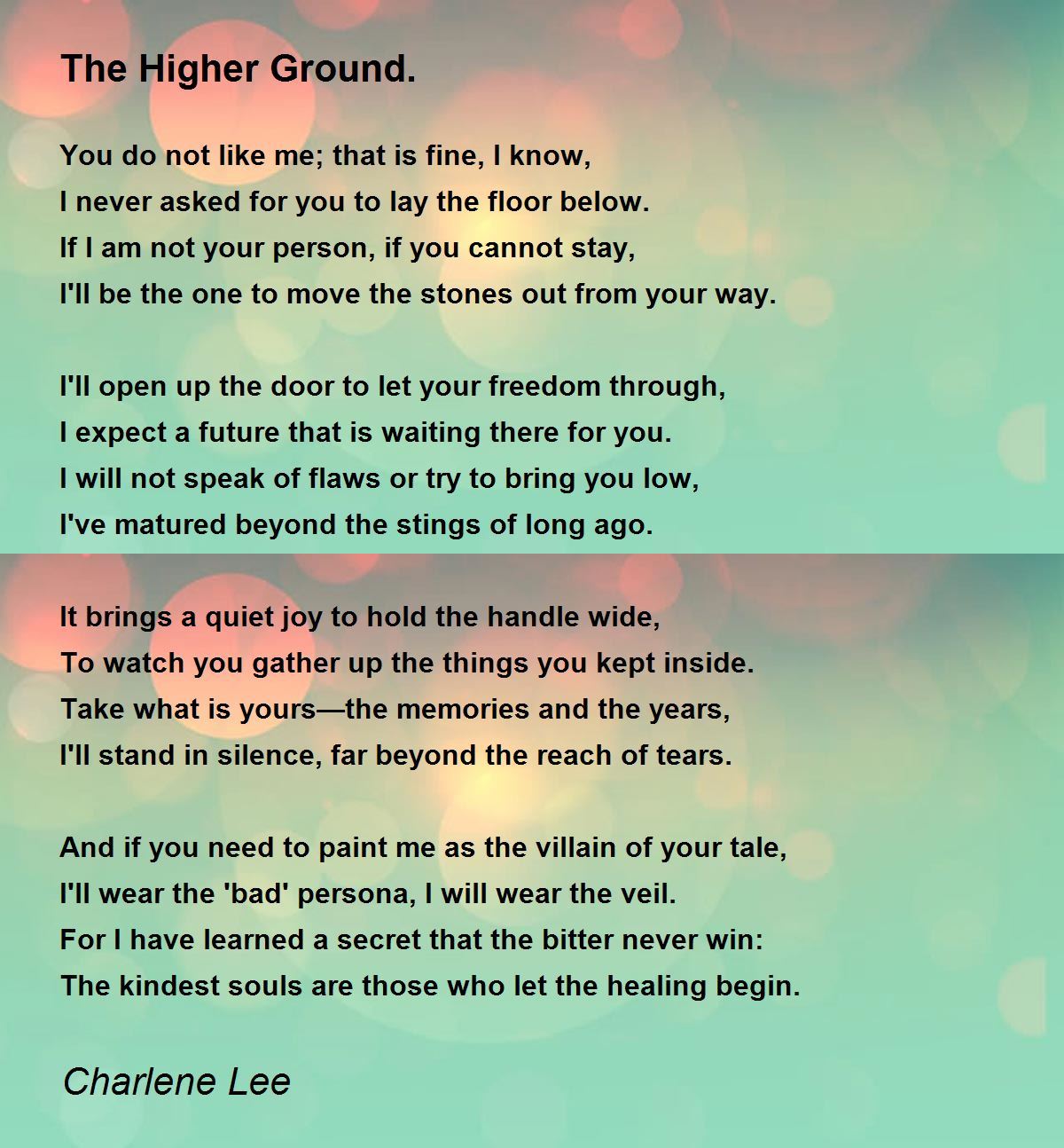 For I have learned a secret that the bitter never win: