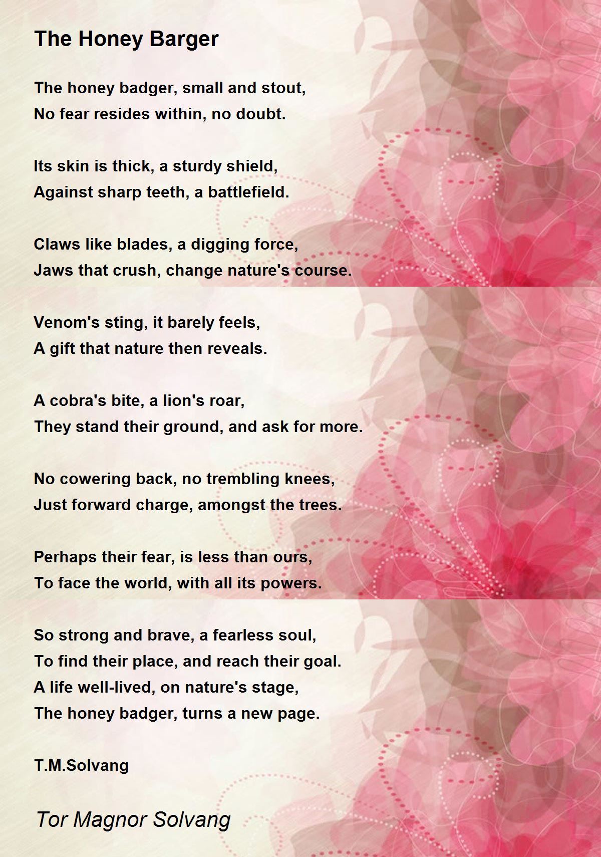 The honey badger, small and stout,