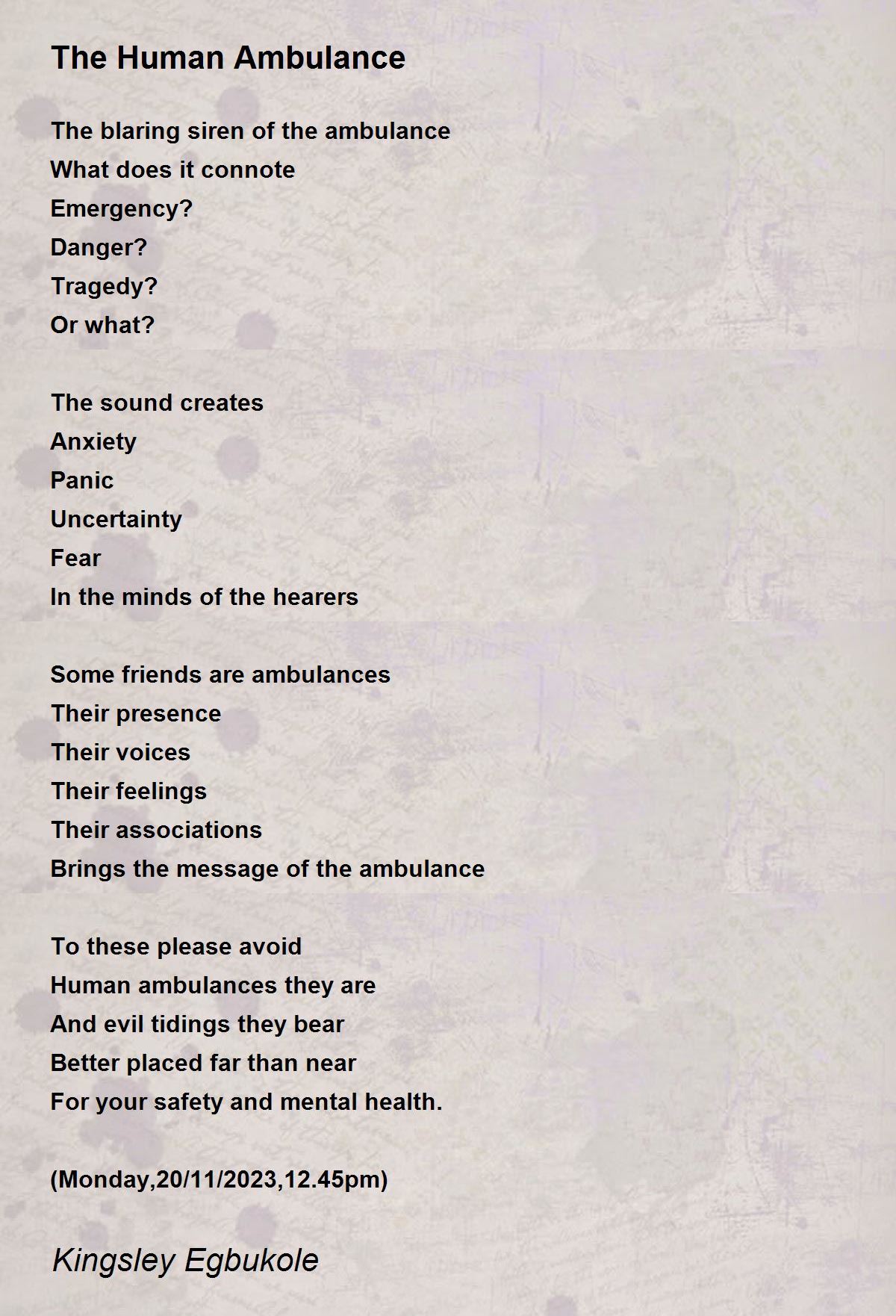 Brings the message of the ambulance