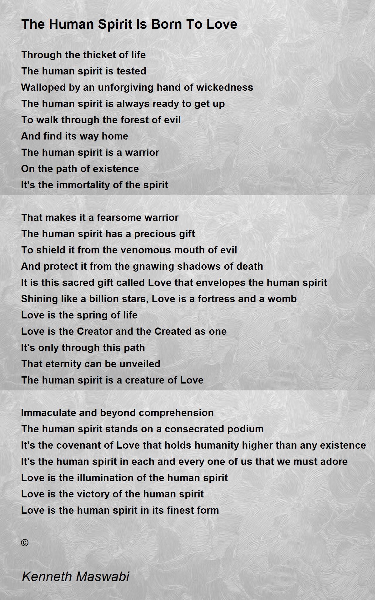 The human spirit is a creature of Love