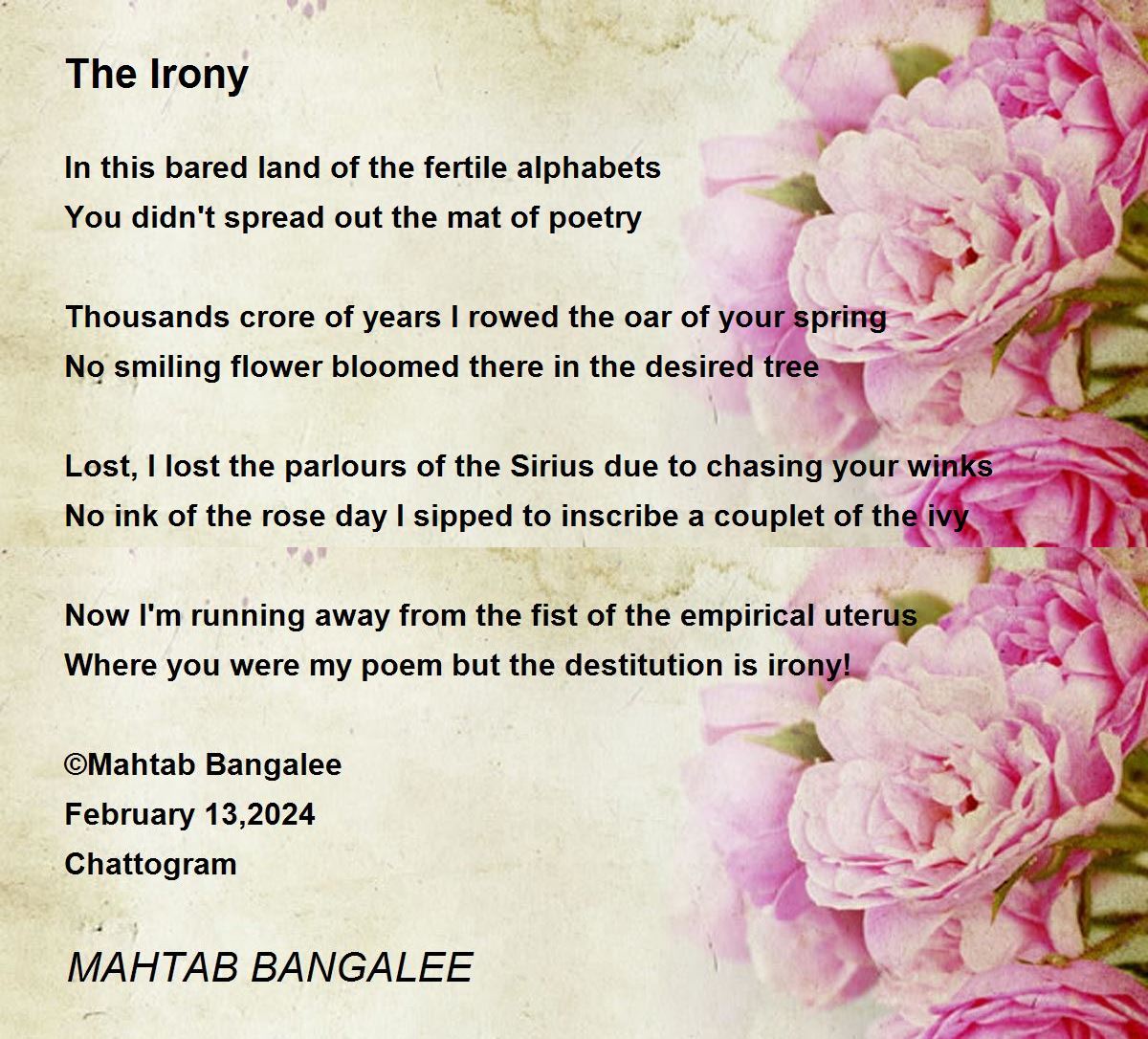 No ink of the rose day I sipped to inscribe a couplet of the ivy