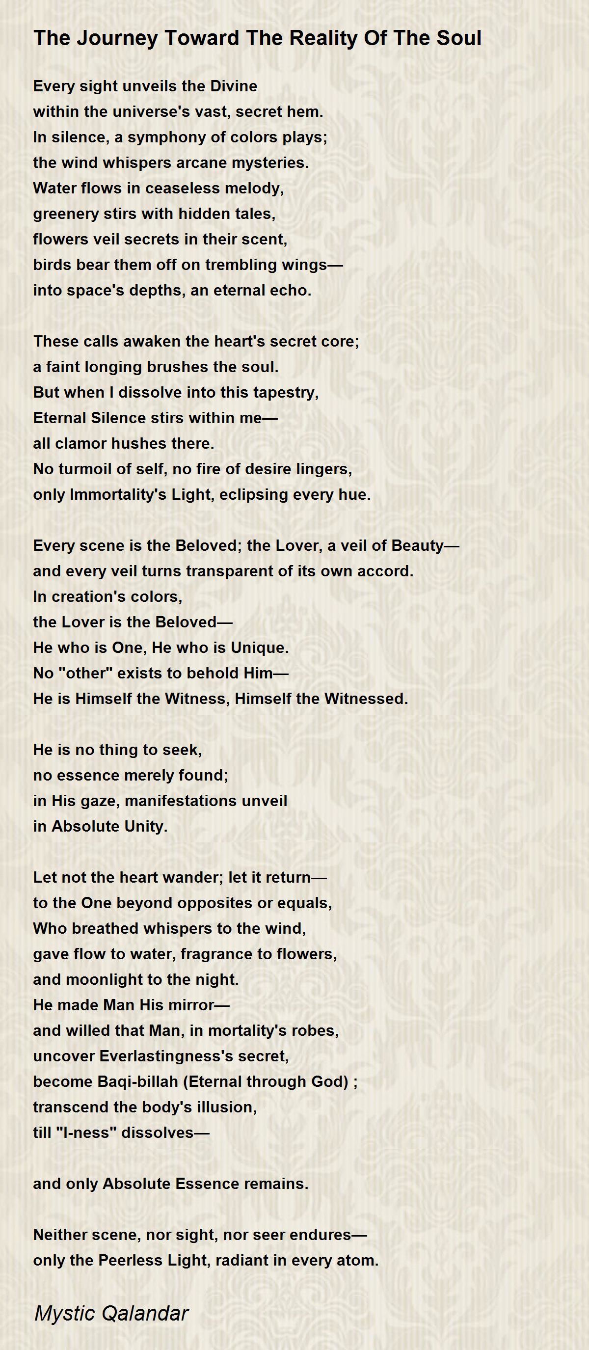 Every scene is the Beloved; the Lover, a veil of Beauty—