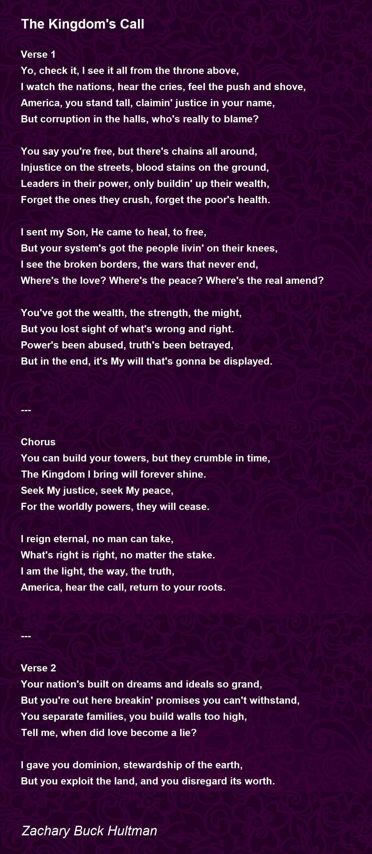 It's about My Kingdom, the righteous stand.