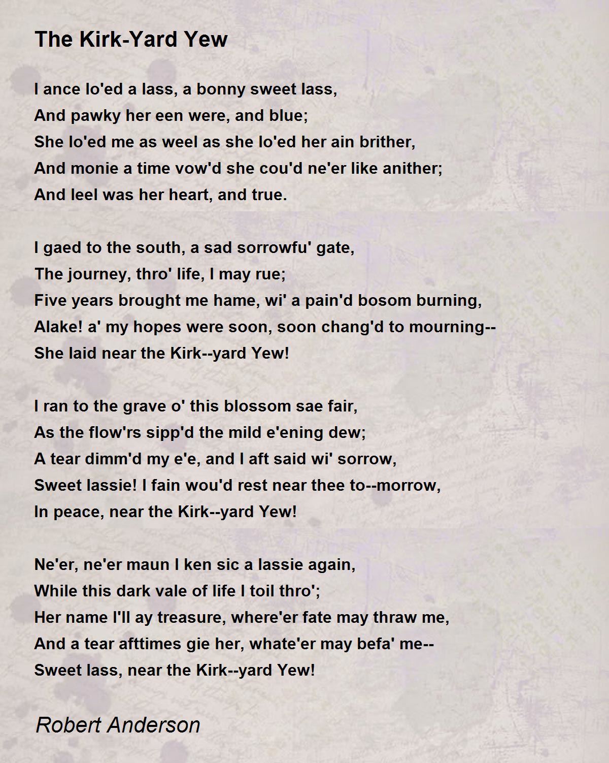A tear dimm'd my e'e, and I aft said wi' sorrow,