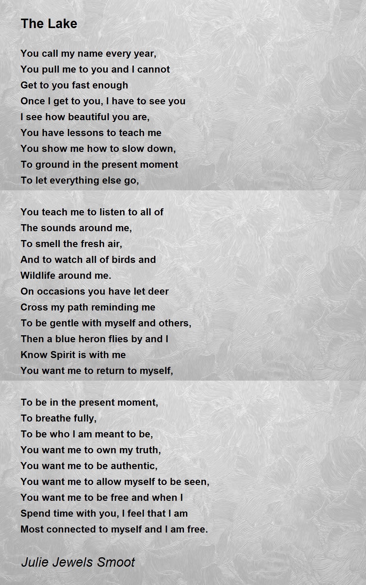 I love lakes and I love this poem! Very well done, Julie! Welcome to Poem Hunter!