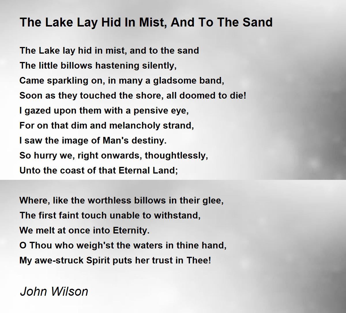 The Lake lay hid in mist, and to the sand