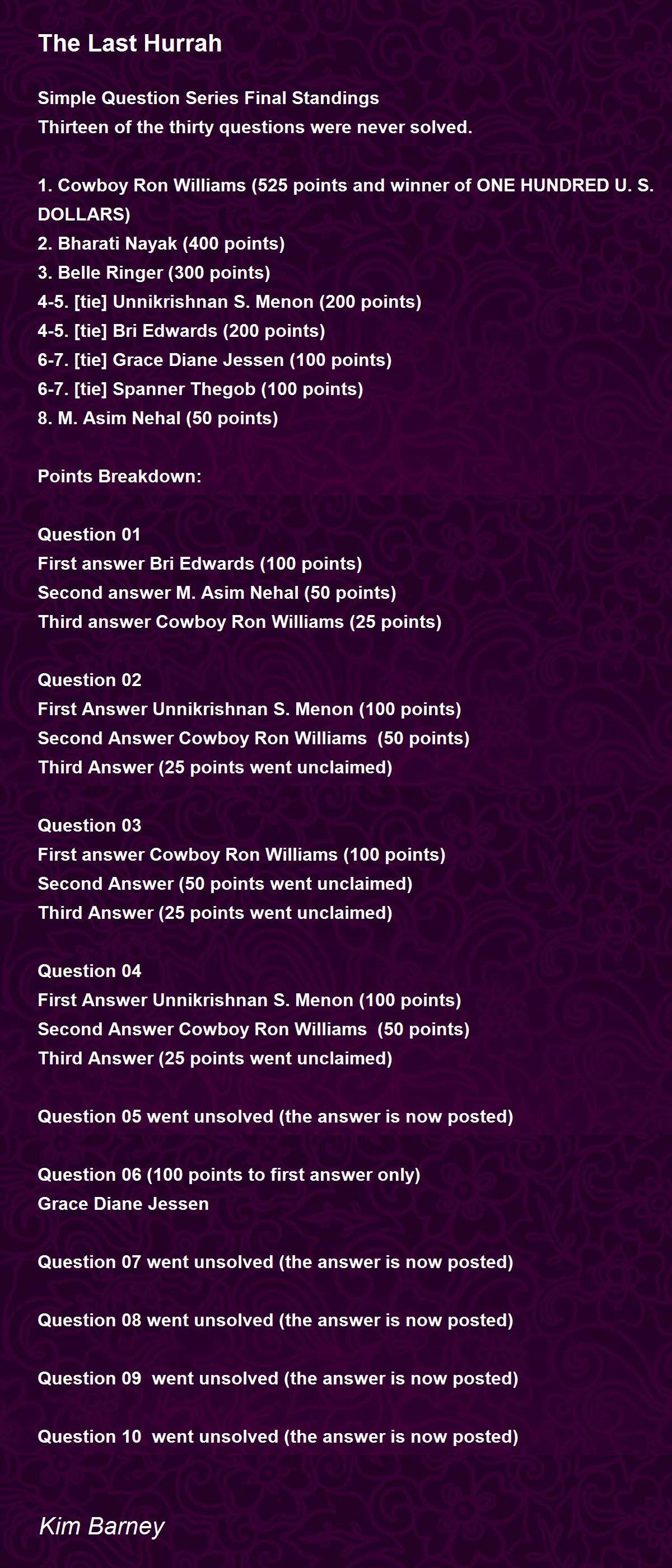 This quiz series was interesting and much fun.Congratulations Cow Boy for topping the competition! Now we may ask Cowboy to give us treats with the prize money.