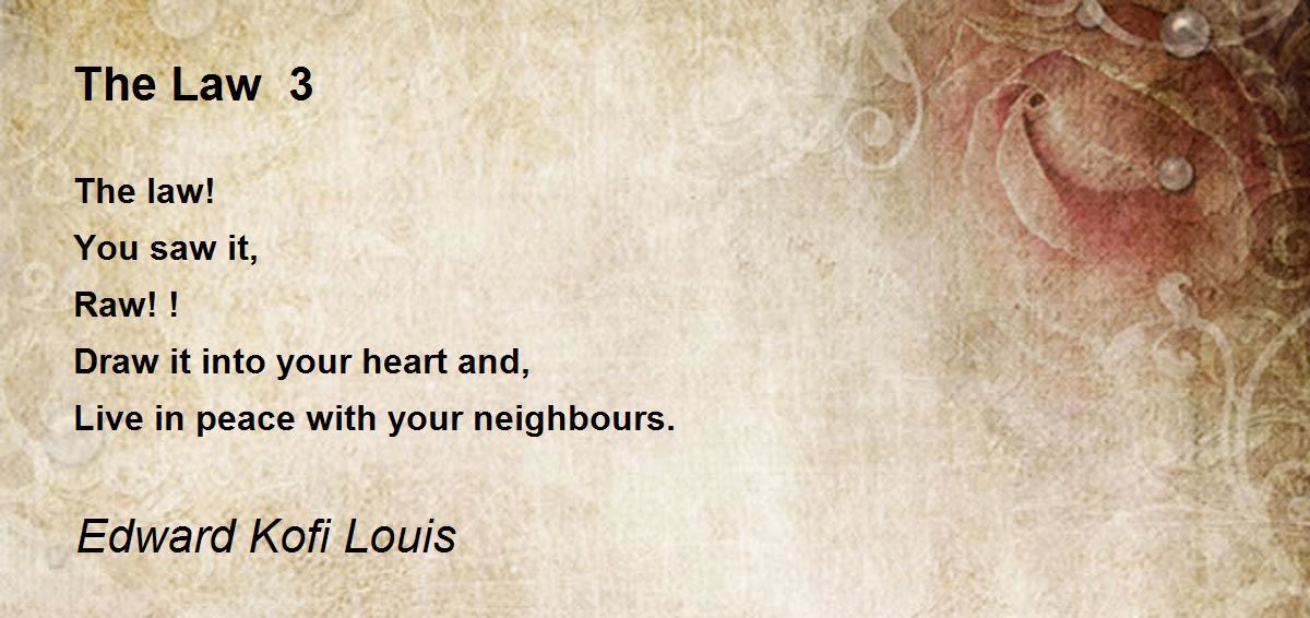 The law! You saw it, Raw! ! Draw it into your heart and, Live in peace with your neighbours.