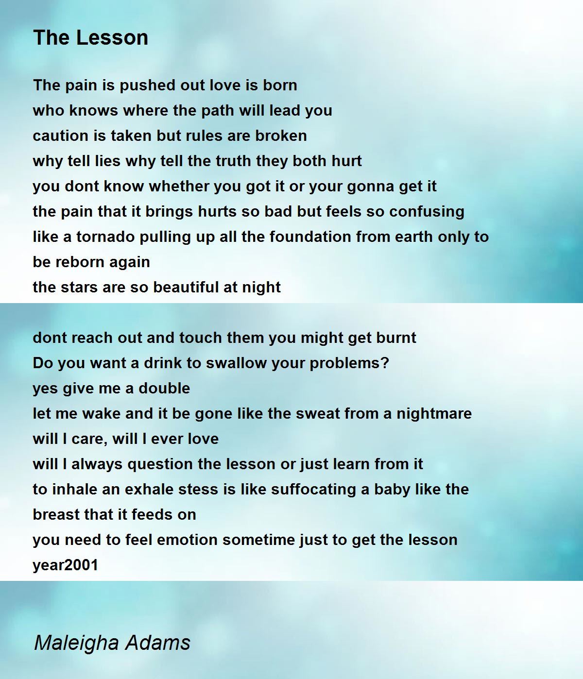 will I always question the lesson or just learn from it