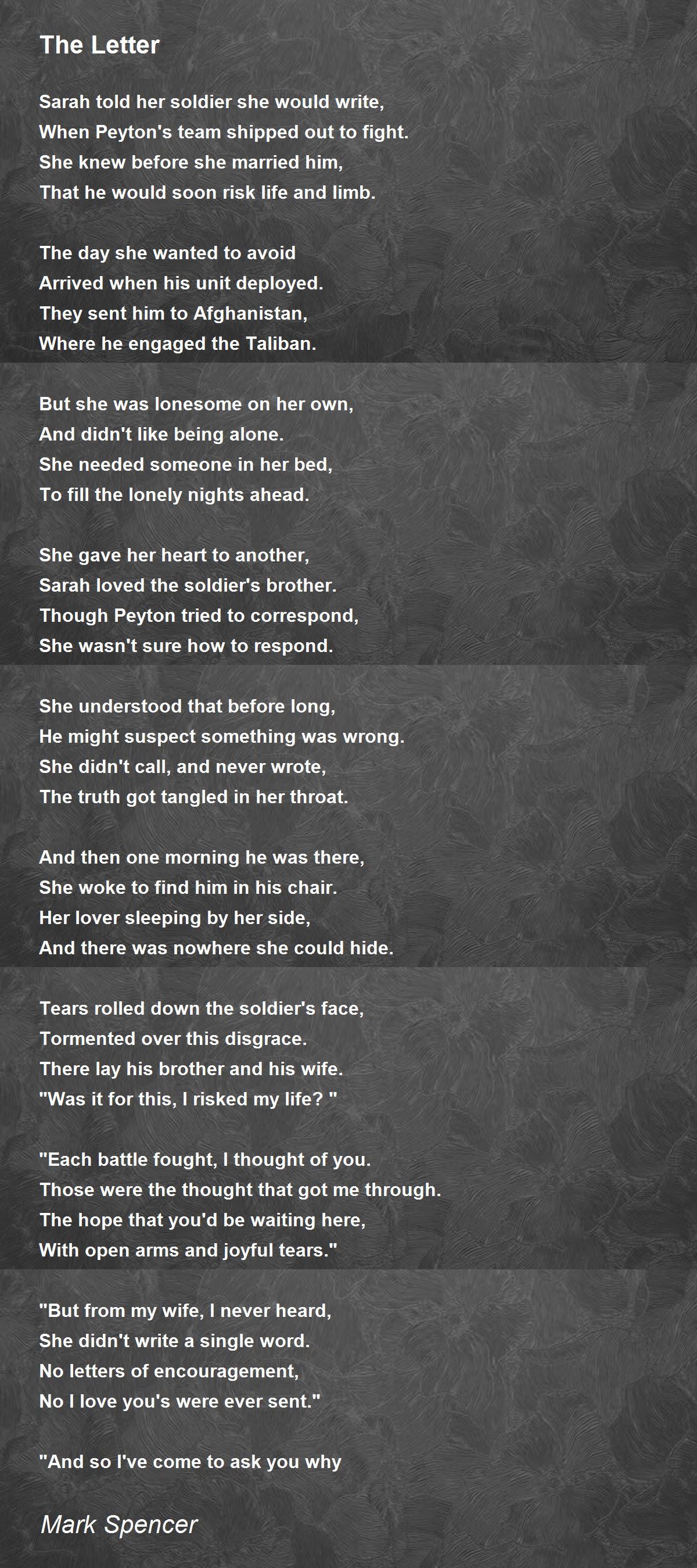 Sarah told her soldier she would write,