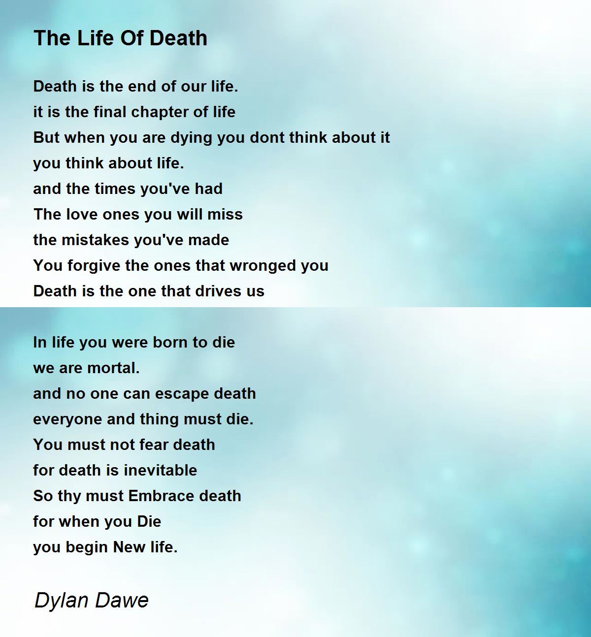 I wish everyone knew that death is only a gate towards another existance. I like your point of view.