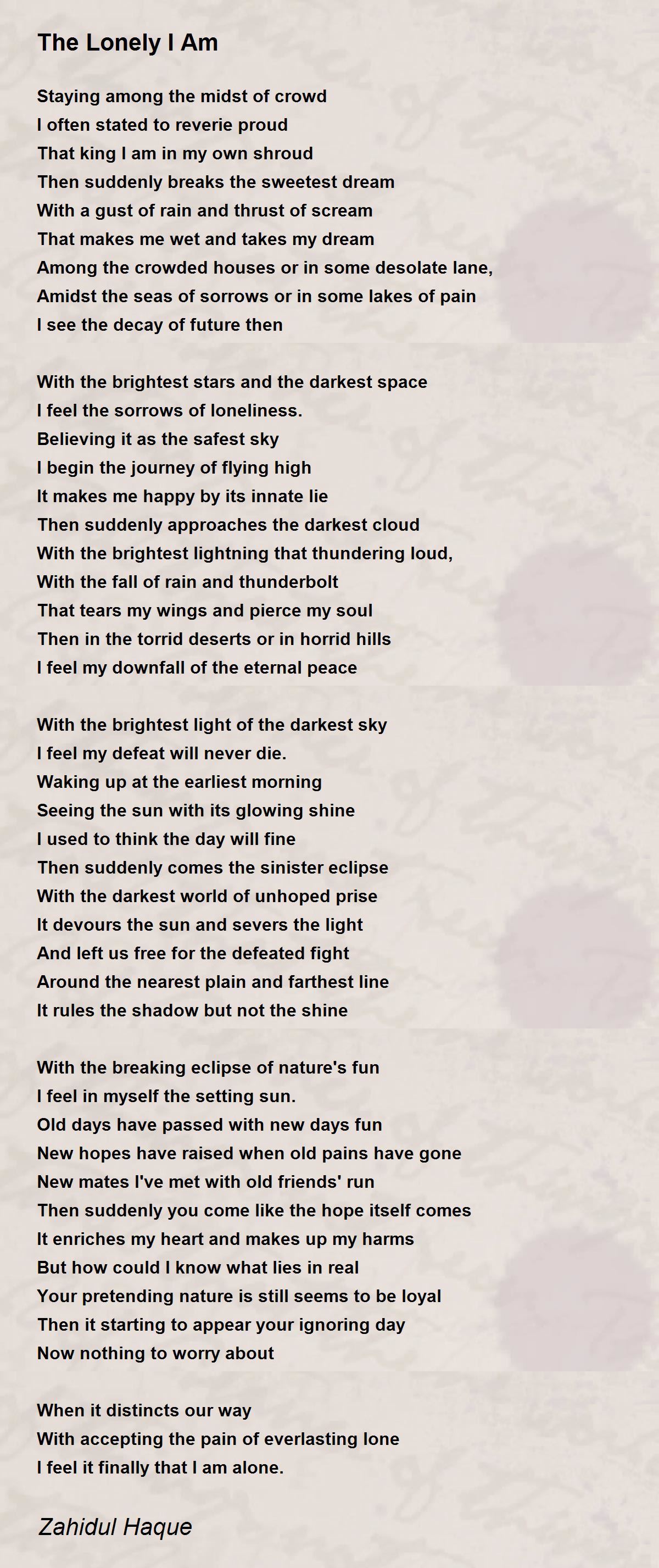 A wonderful write. We pray to Almighty for your good sake. Poem hunter welcomes you. A perfect 10(vote) . Remember nobody is ever alone. The Almighty is always there to guide us! Hope to see your views on my poetries. Naila