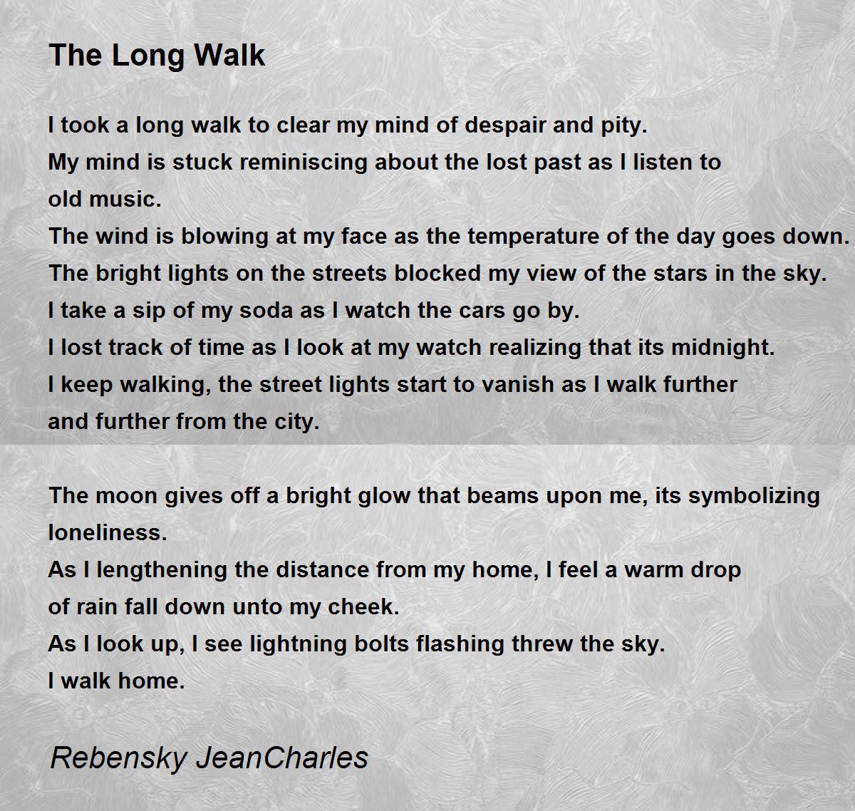As I lengthening the distance from my home, I feel a warm drop of rain fall down unto my cheek.
