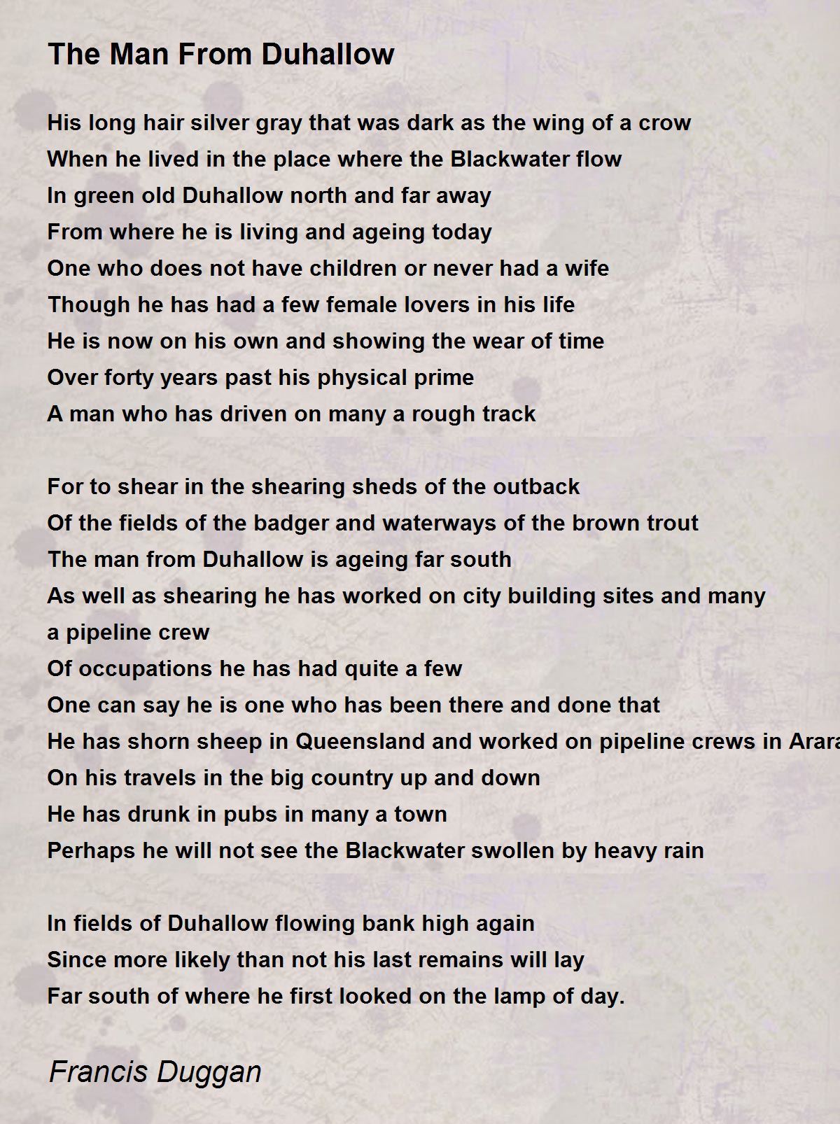 The man from Duhallow is ageing far south