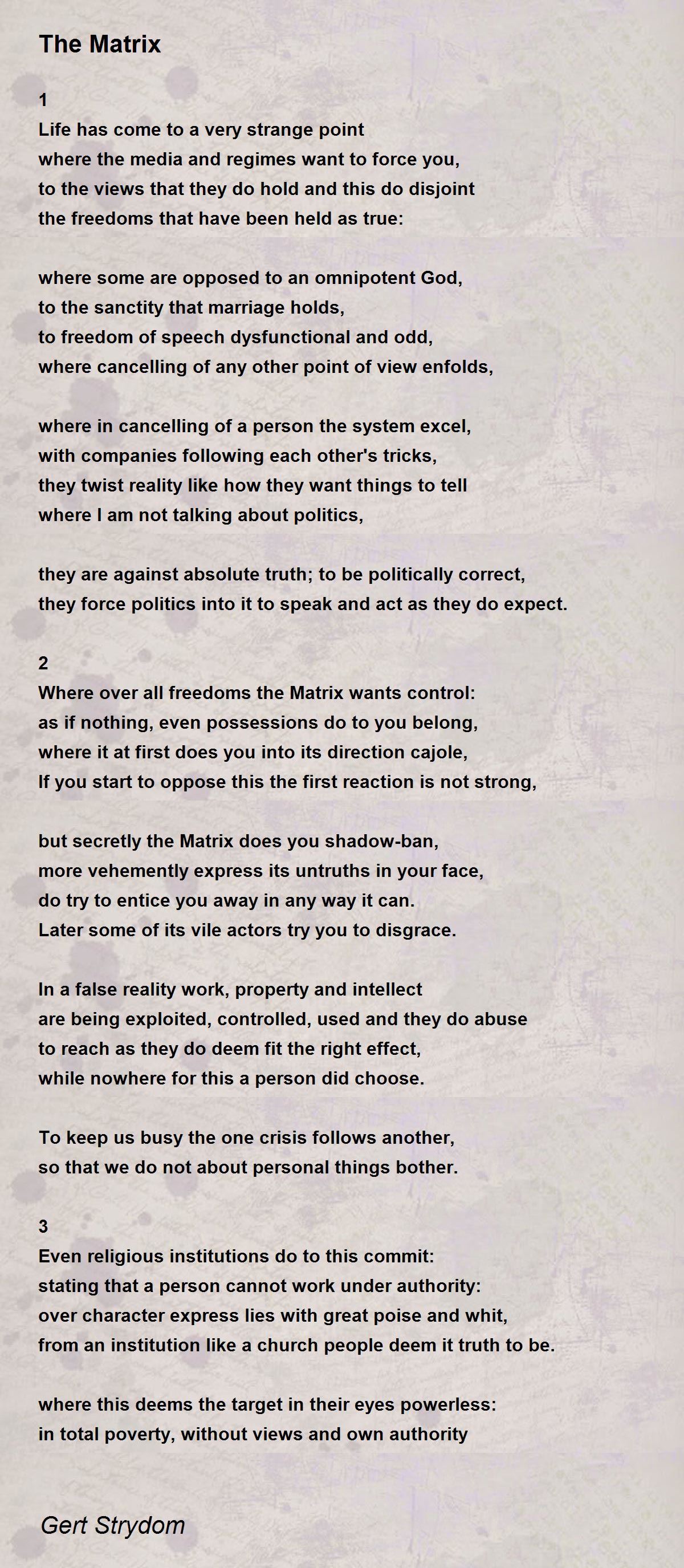 If a person want to politics attest: the Biden-laptop do also bring truth to this, but the poet choose to be apolitical.