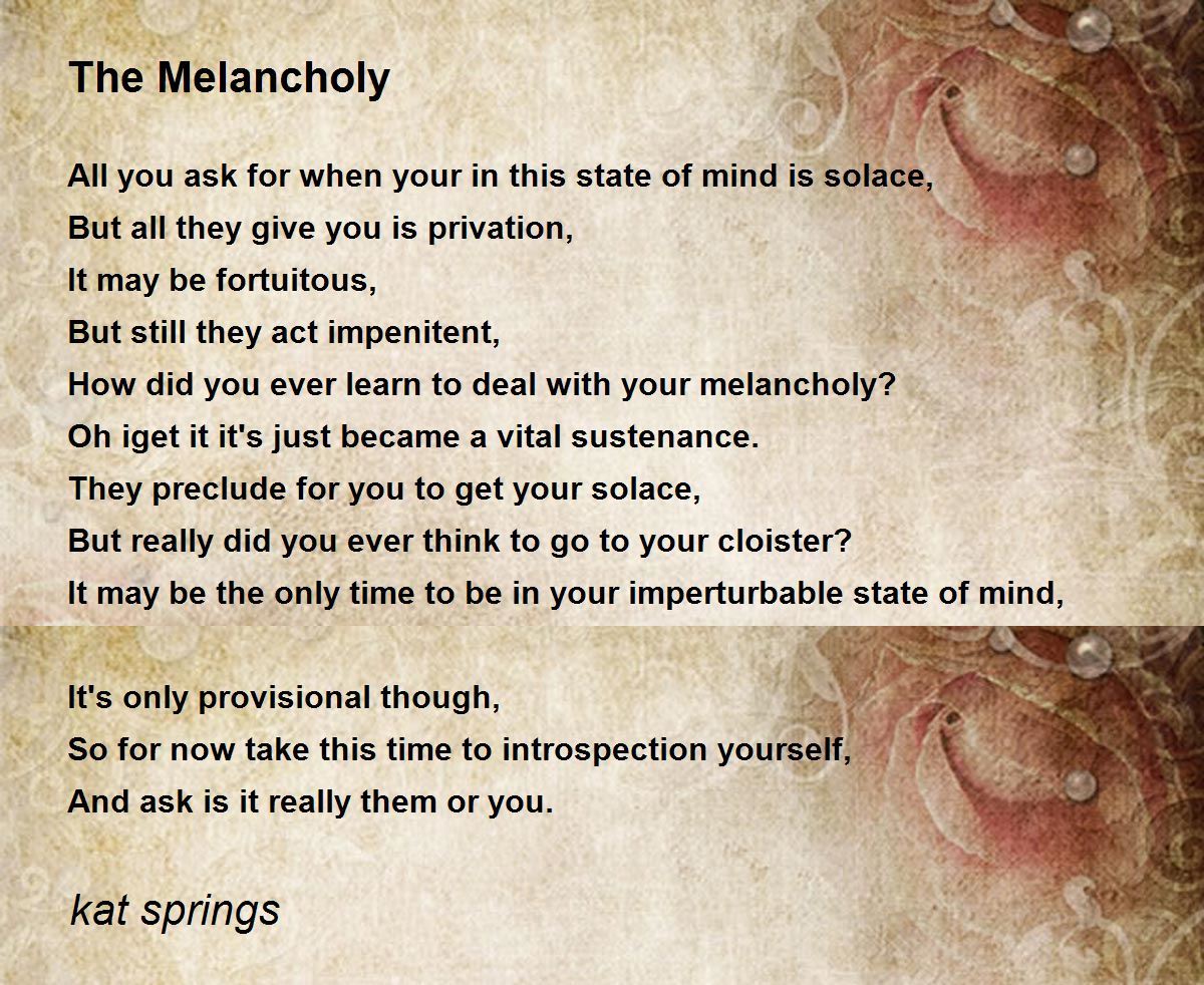 How did you ever learn to deal with your melancholy?