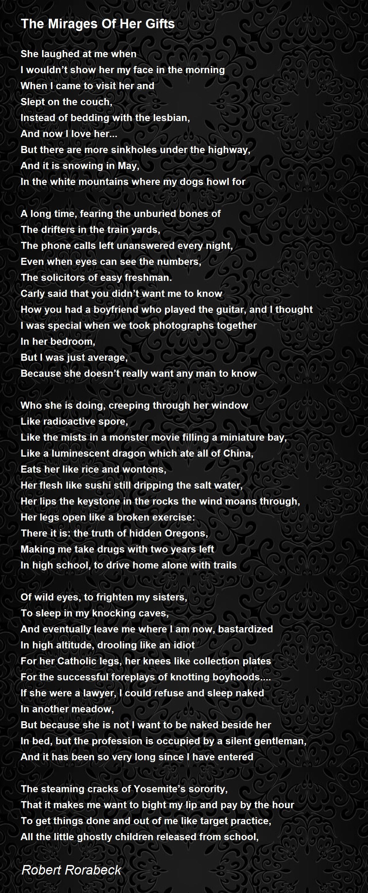 Flaunting in the mirages of her gifts.