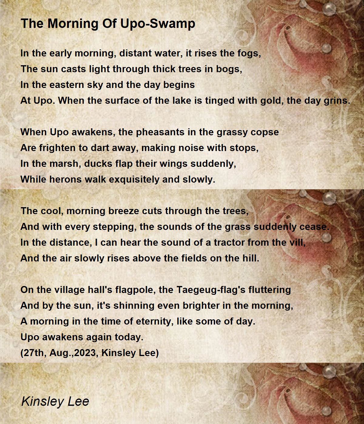 At Upo. When the surface of the lake is tinged with gold, the day grins.