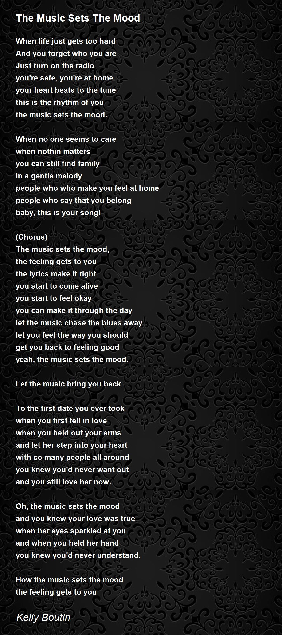 Oh, the music sets the mood