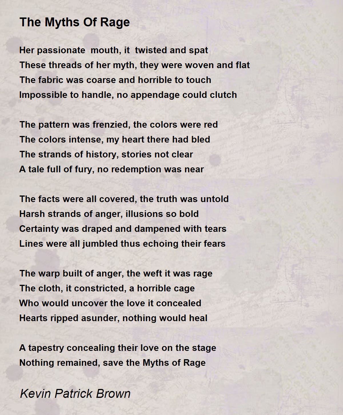 The warp built of anger, the weft it was rage