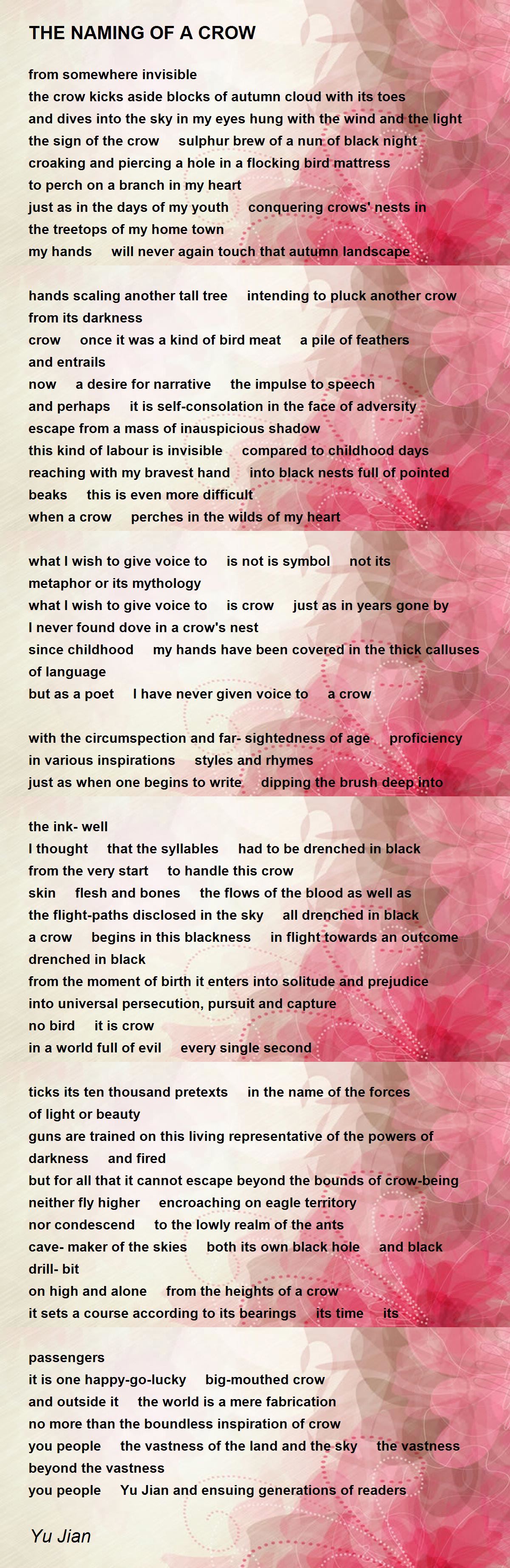 crow once it was a kind of bird meat a pile of feathers and entrails