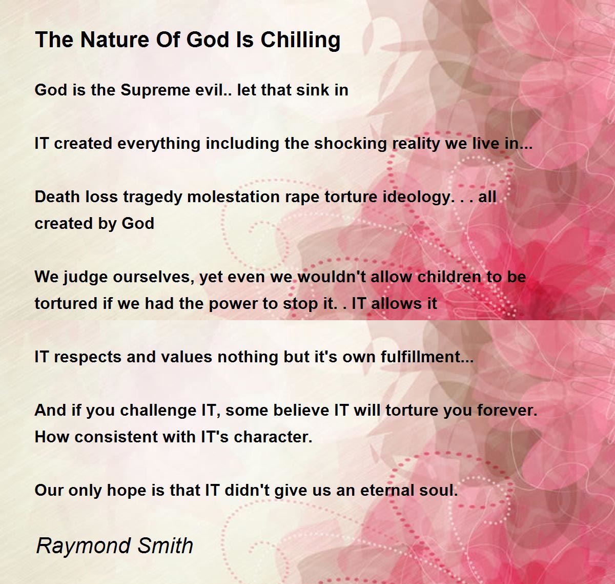 Death loss tragedy molestation rape torture ideology... all created by God