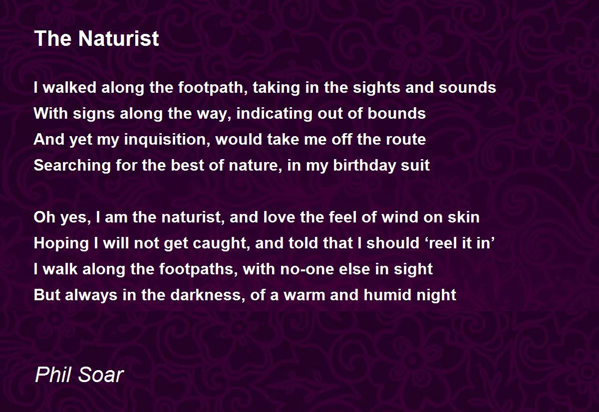 Oh yes, I am the naturist, and love the feel of wind on skin