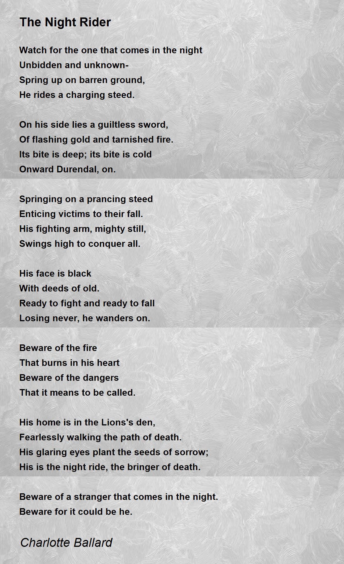 His is the night ride, the bringer of death.