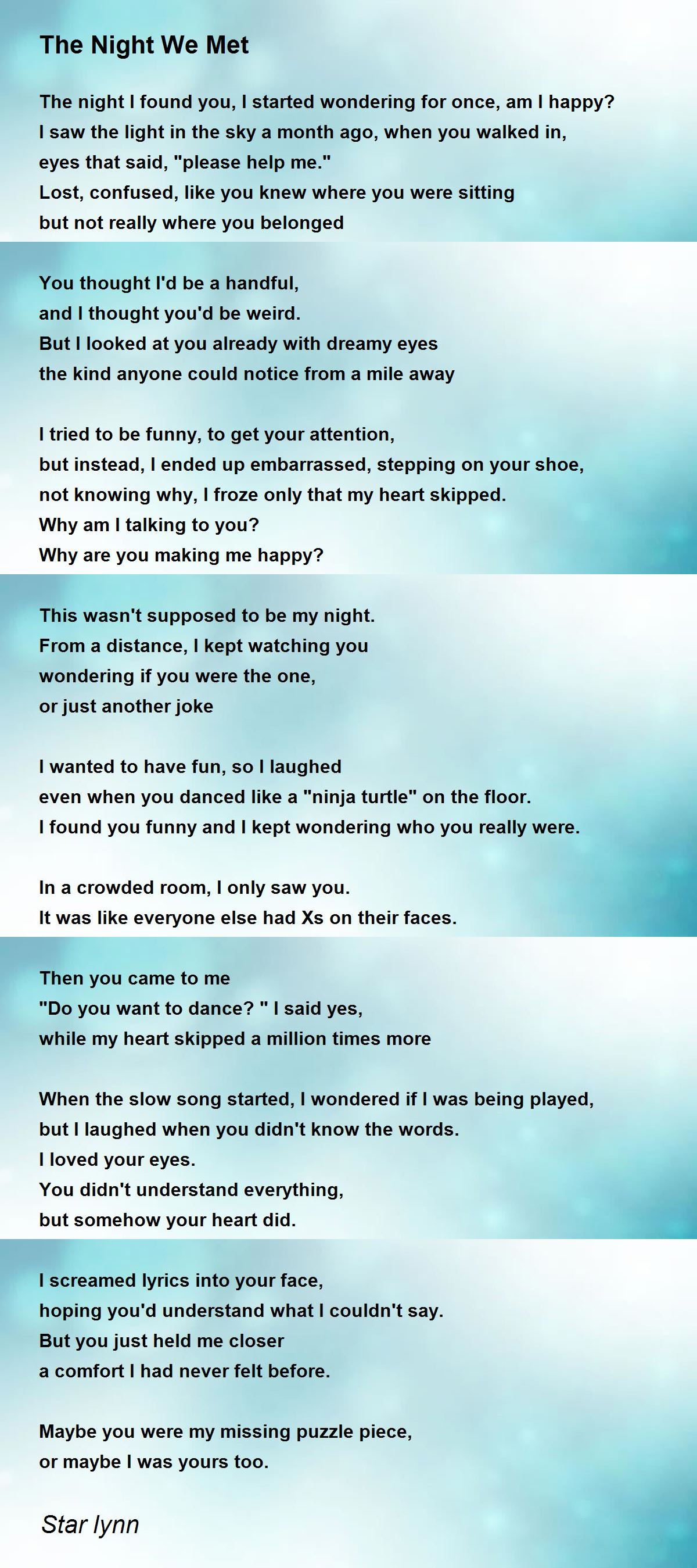 The night I found you, I started wondering for once, am I happy?