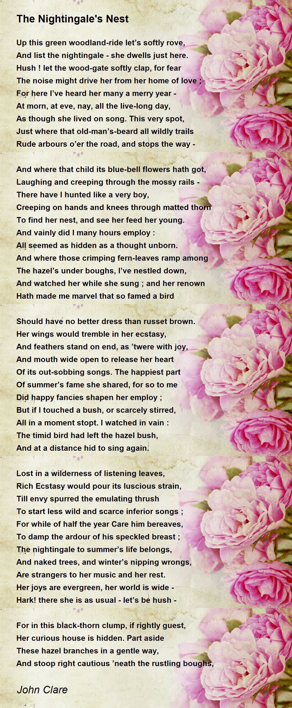 Seems to me this is about nature and the excitement of engaging with it. Keats poem is, itseems to me, about the human condition, but this has nature as the fabric of the nest, the poem and of our excitement at finding and seeing the nest.