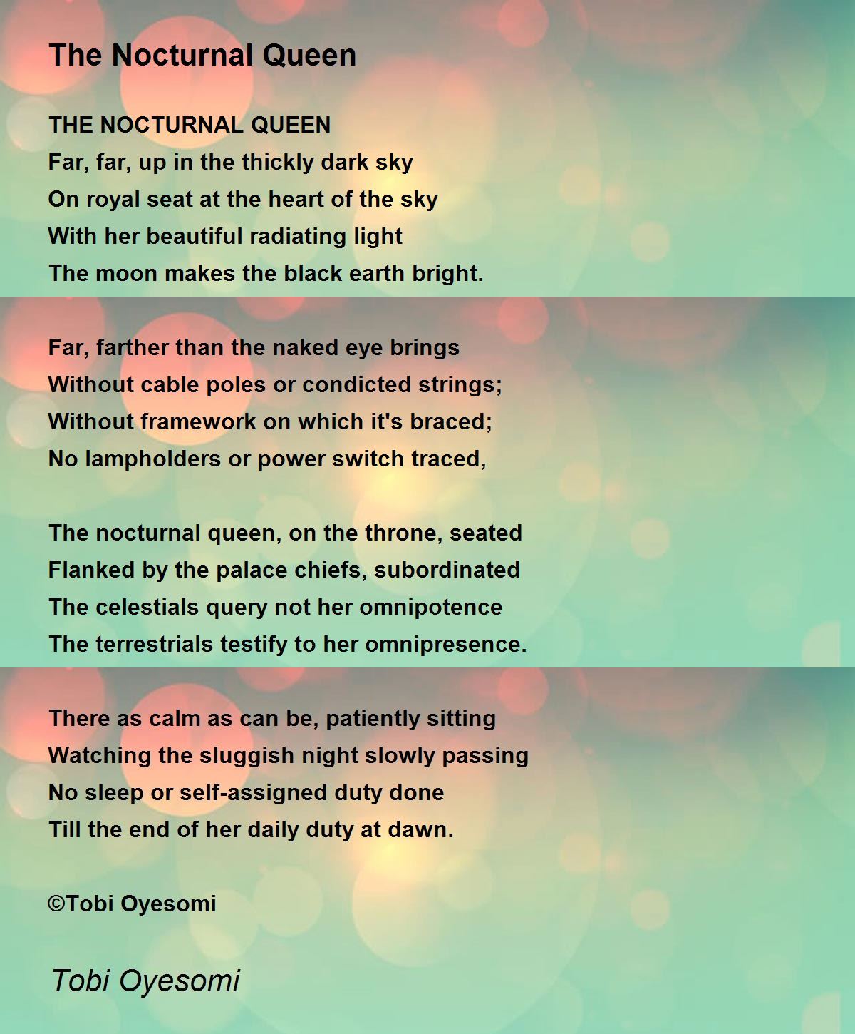 What a magical pen you have dear poet Tobi. Keep writing...Thanks for sharing
