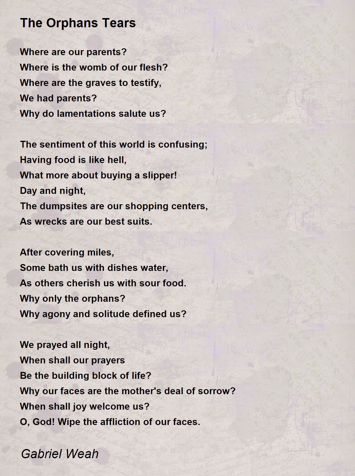 O, God! Wipe the affliction of our faces.