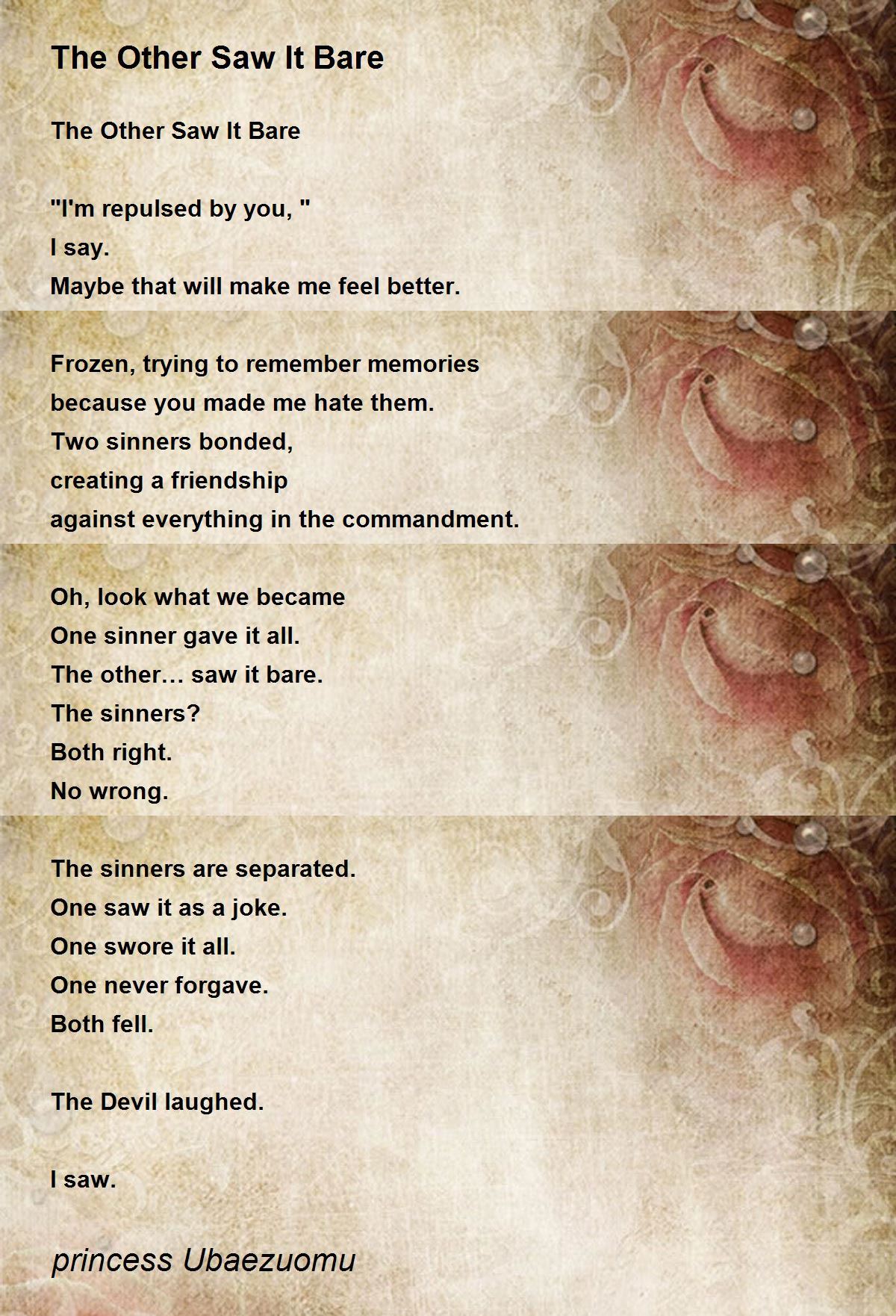 wow. it might be about a friendship, but it seems like something else to me, which I think is a quality of the best poems- something u can relate to. Great job.