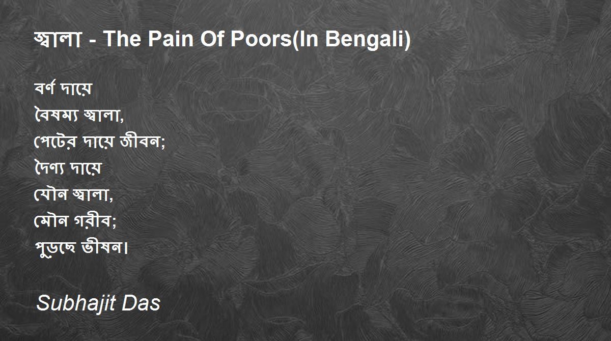 বর্ণ দায়ে বৈষম্য জ্বালা, পেটের দায়ে জীবন; দৈণ্য দায়ে যৌন জ্বালা, মৌন গরীব; পুড়ছে ভীষন।