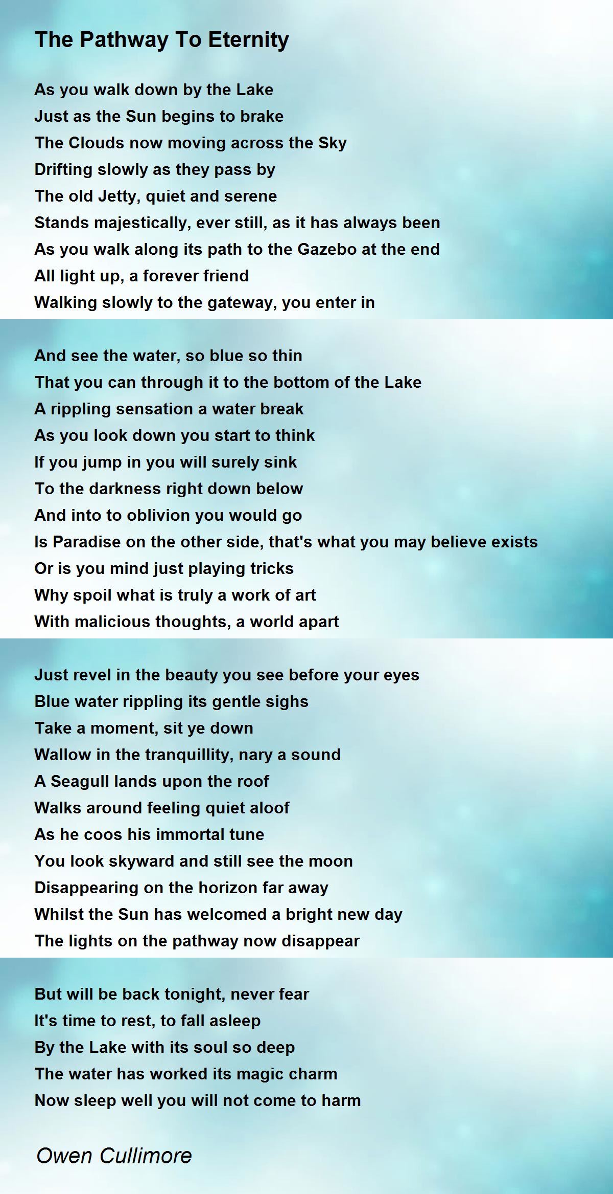 Blue water rippling its gentle sighs