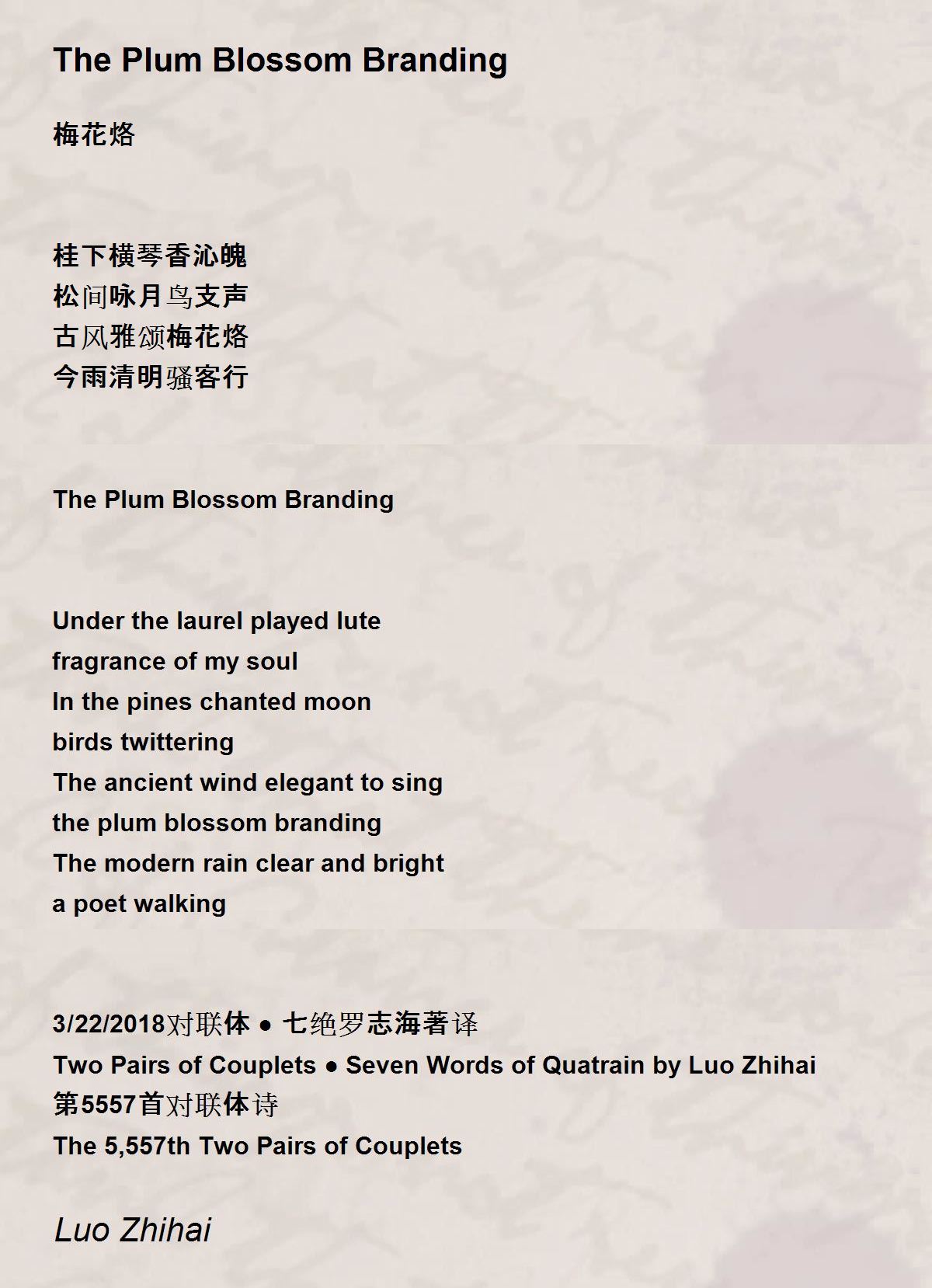 3/22/2018对联体 ● 七绝罗志海著译